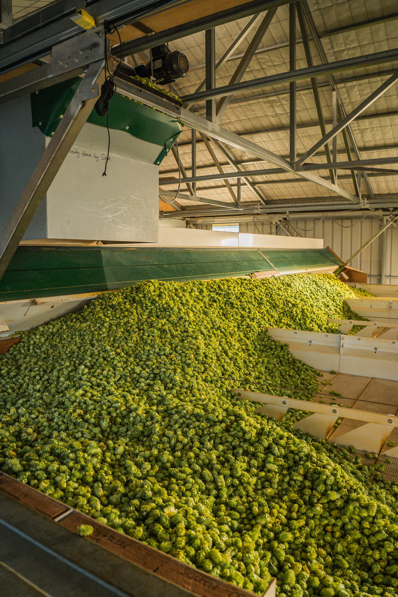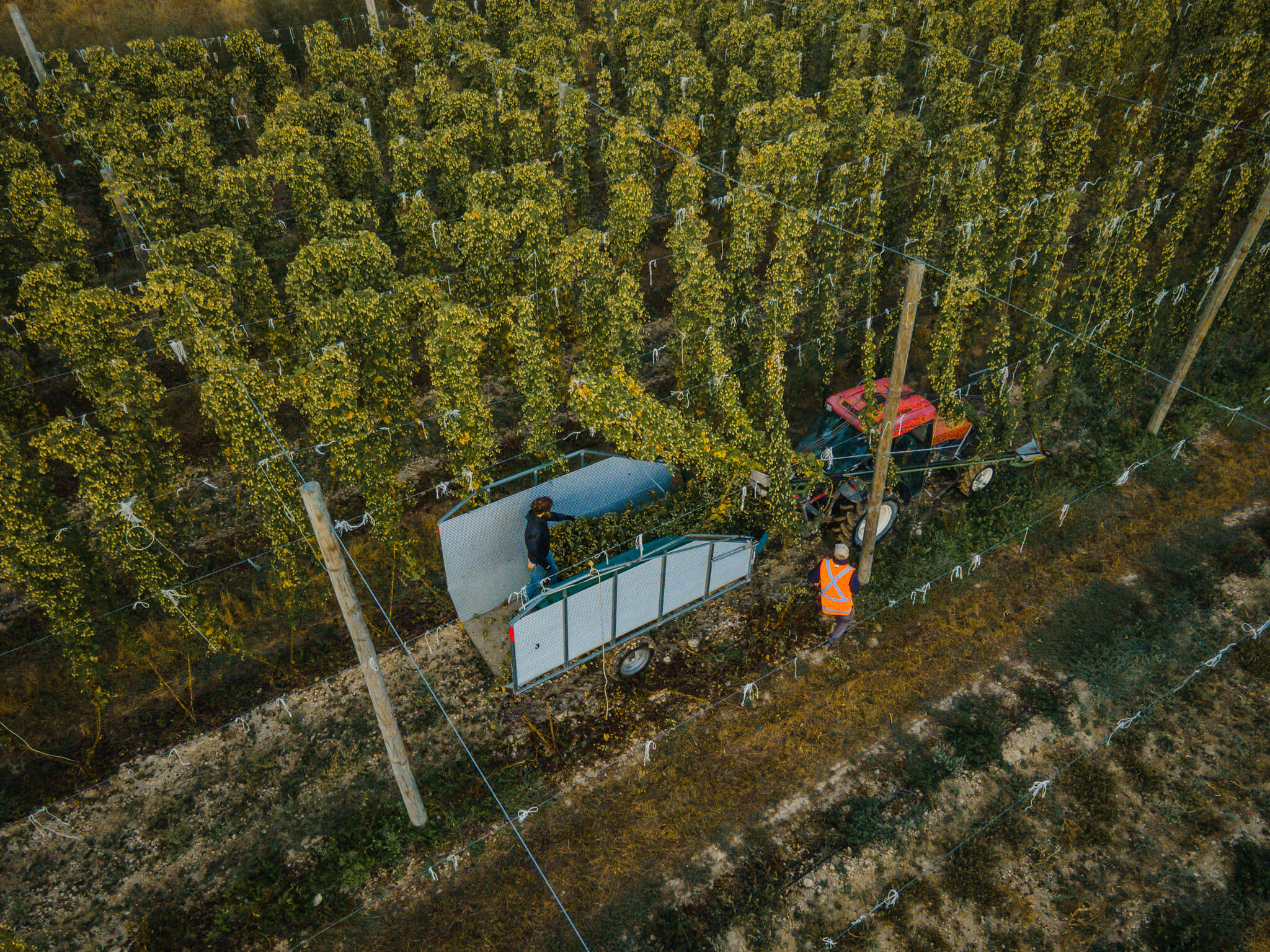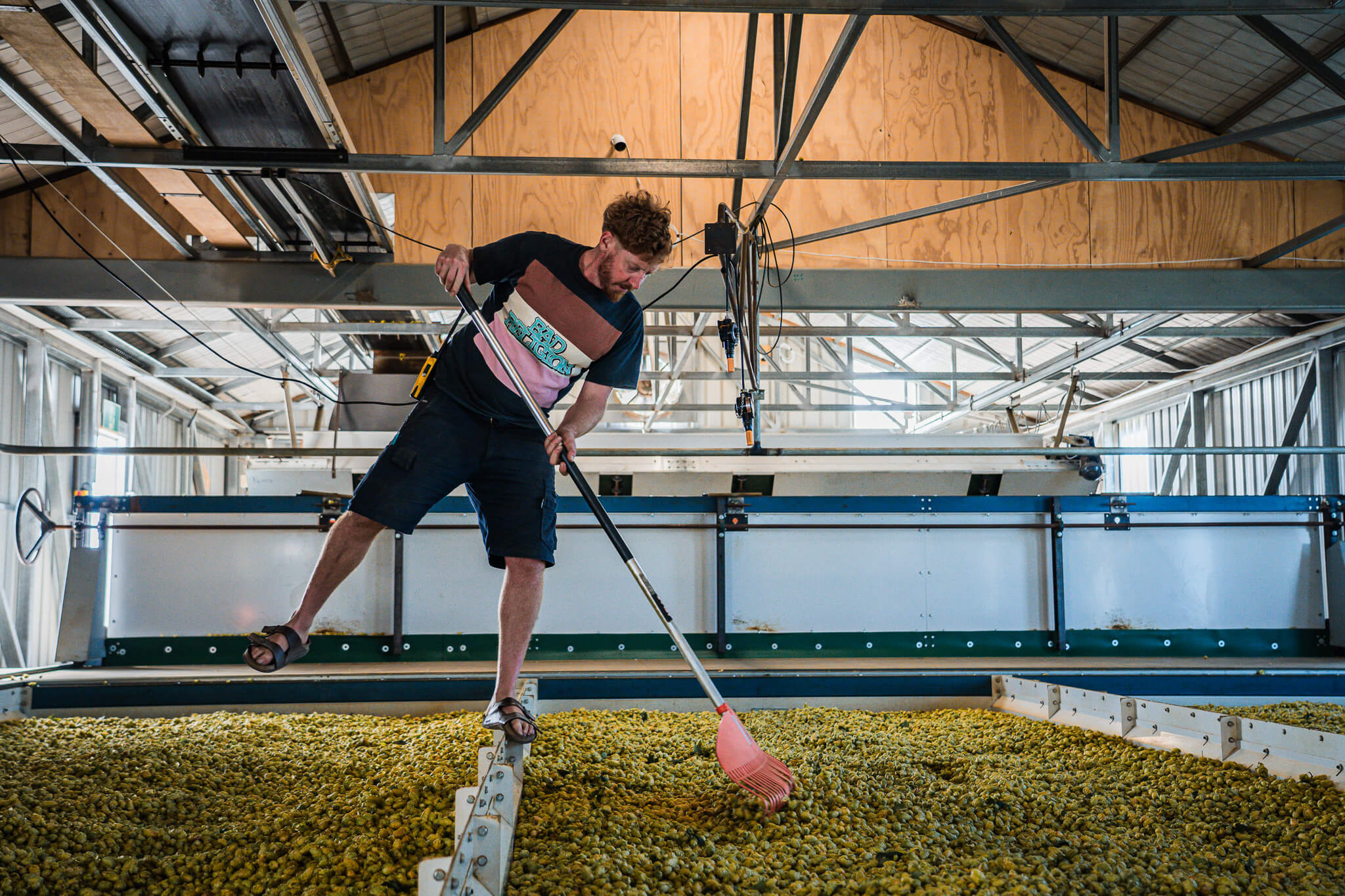 Agriculture photography documenting hop harvest at Eggers Hops in New Zealand